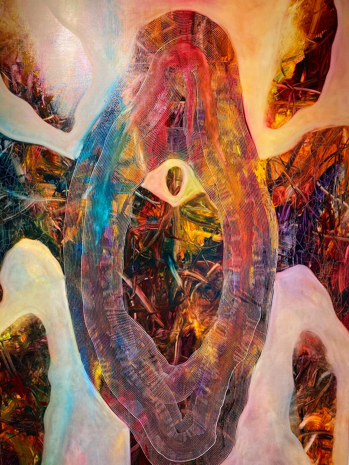Sa peinture est totalement intuitive ; elle s'élève de la mémoire collective subconsciente à la lumière de la conscience.