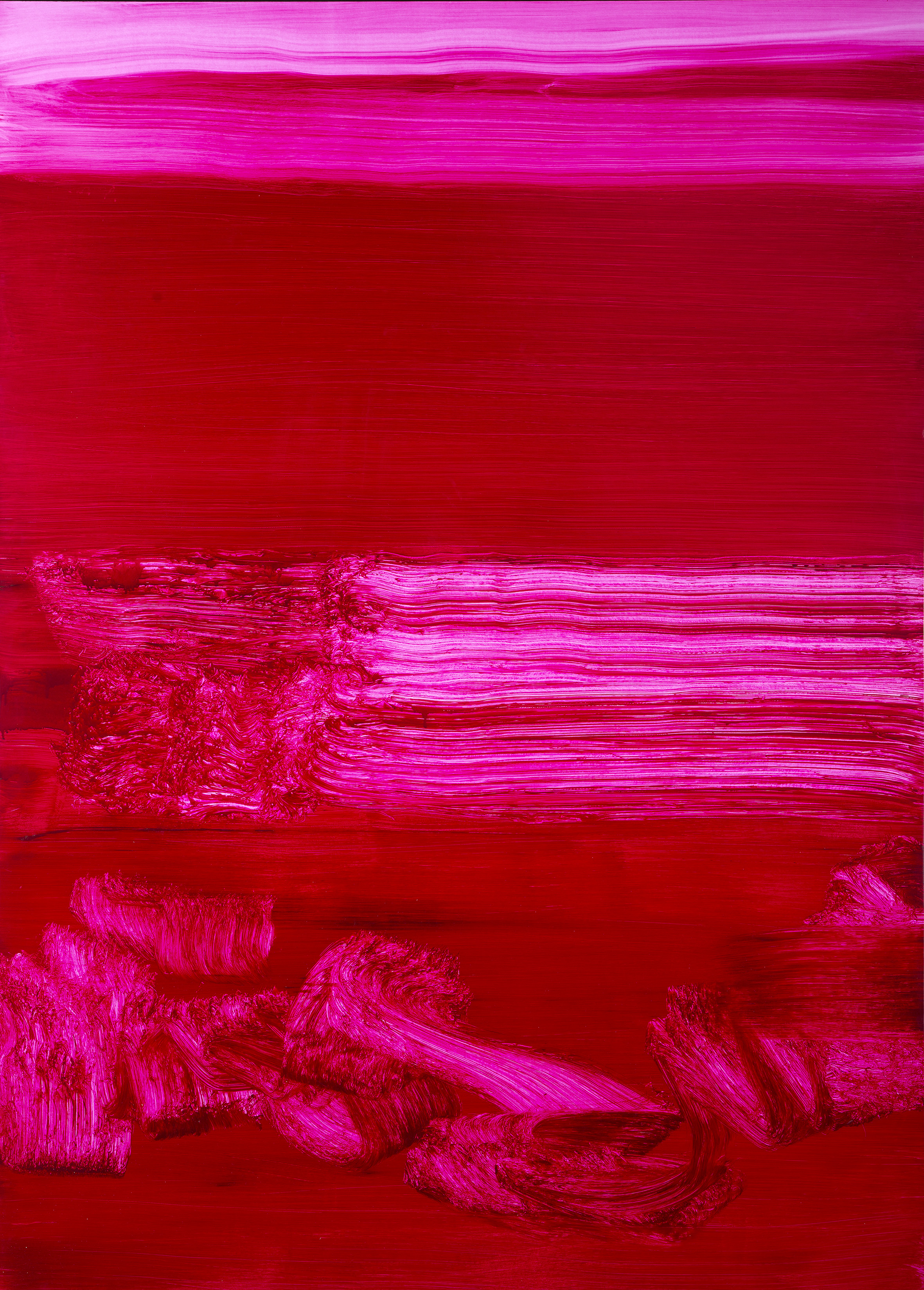 Ce processus de peinture se fait à travers de multiples couches. Chaque couche est ensuite effacée pour donner vie à une nouvelle couche qui disparaît à son tour..... Et cela continue jusqu'à ce que le peintre atteigne la dernière couche qui existe pour lui comme une évidence.
