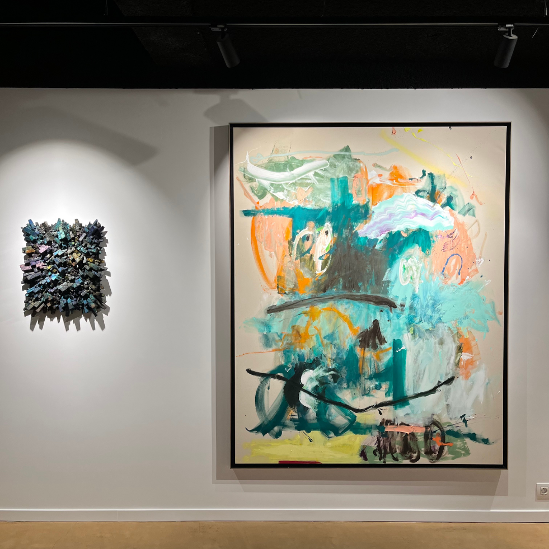 Libre d’expérimenter, Kevin Douillez aborde l’imaginaire abstrait sous la forme d’un purgatoire. Projetées, éclatées, incisées, les couches de peintures acryliques se répondent les unes aux autres afin de construire un — nouvel — équilibre dans le désordre.