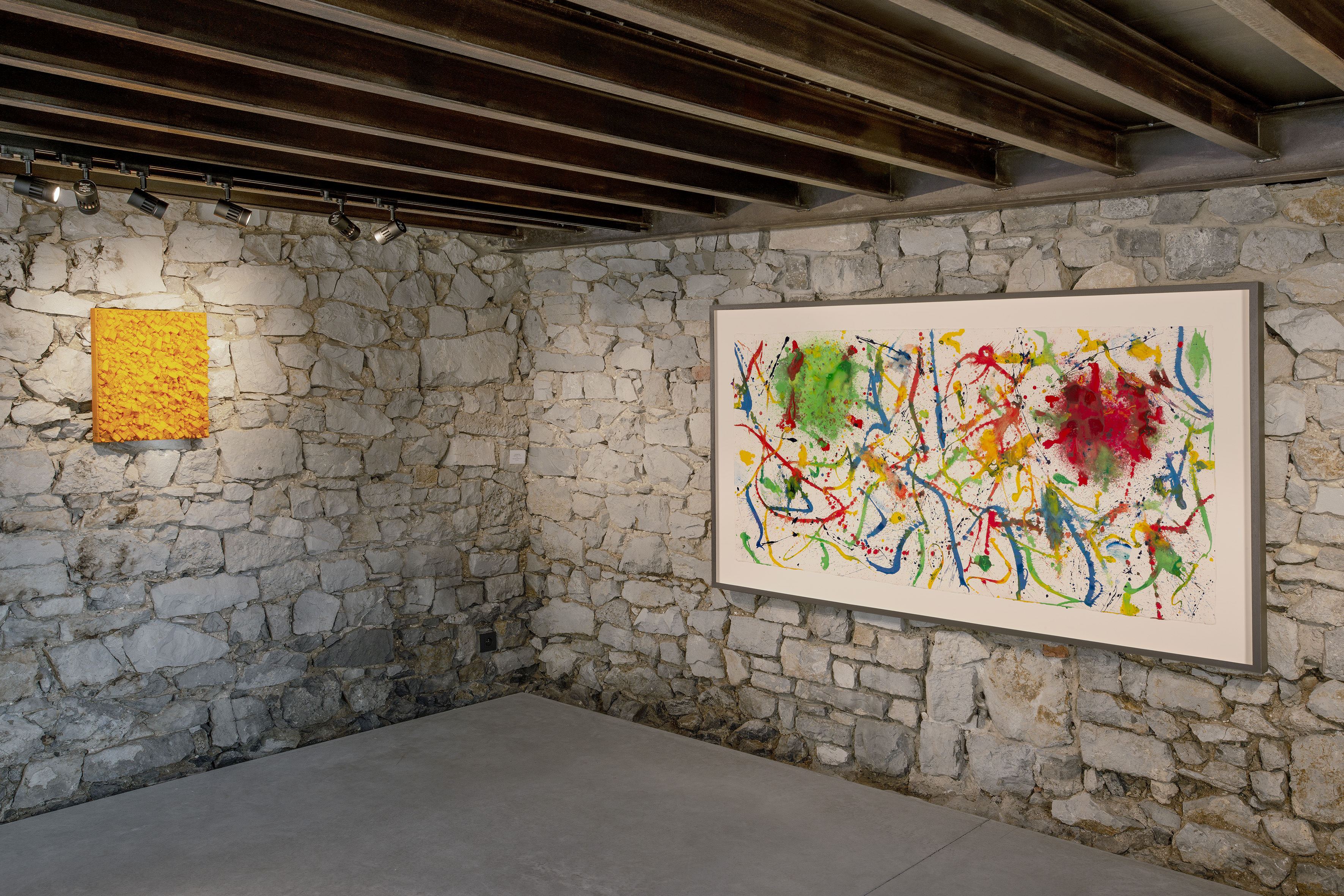 Influencé par la peinture color-field, Sam Francis travaillera sur des fonds blancs, sur lesquels il applique des taches de couleurs nuancées qui coulent, enserrent ou libèrent l’espace vierge.