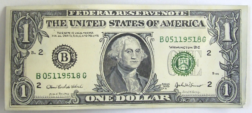 Durant la même période, il a aussi réalisé des répliques exactes de billets de 1 dollar, mais en bronze peint. Avec cette idée que le collectionneur achète de l’argent avec de l’argent.