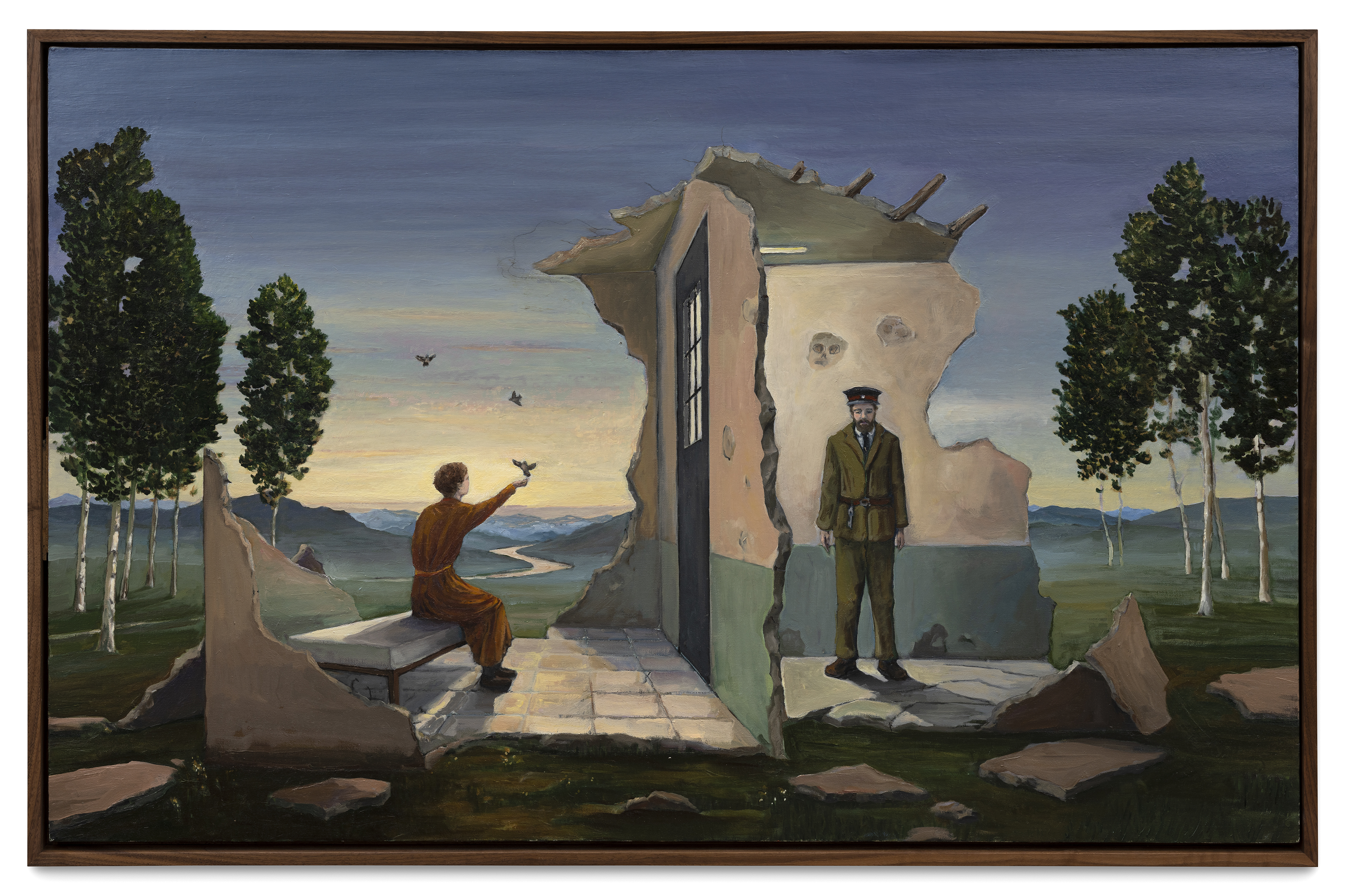 Sa peinture résolument d'aujourd'hui se veut l'héritière et la continuation d'une tradition picturale. Imprégnée de surréalisme (Magritte) et de romantisme (Caspar Friedrich), elle se situe dans un temps inexistant et fantasmé.