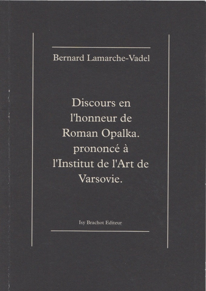 Discours en l’honneur de OPALKA <br/>( Bernard Lamarche Vadel) à Varsovie